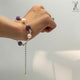Made with 8mm Aquamarine, 8mm Pink Quartz and 8mm Dreamy Lavender with a mix of 8mm sized fresh water pearls. Golden ball bearings along with the heart enhance the overall look of this gemstone bracelet. Extender is added at the end for customers ease to adjust according to the wrist size.